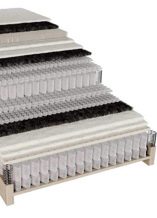 Handcrafted in Estonia by Kamjo’s finest artisans, Golden People is made exclusively from the highest quality natural materials—horsehair, wool, cotton, and Vita Talalay® latex—layered with expert precision in a 28-layer masterpiece. Every element is carefully chosen to enhance your well-being, creating a sleep surface that breathes naturally and adapts seamlessly to your body.