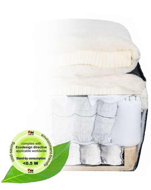 To provide optimal body support, the bed is made up of 12 layers of stuffing material, including wool, cotton, natural Vita Talalay® latex, and pocket springs together with corner springs.